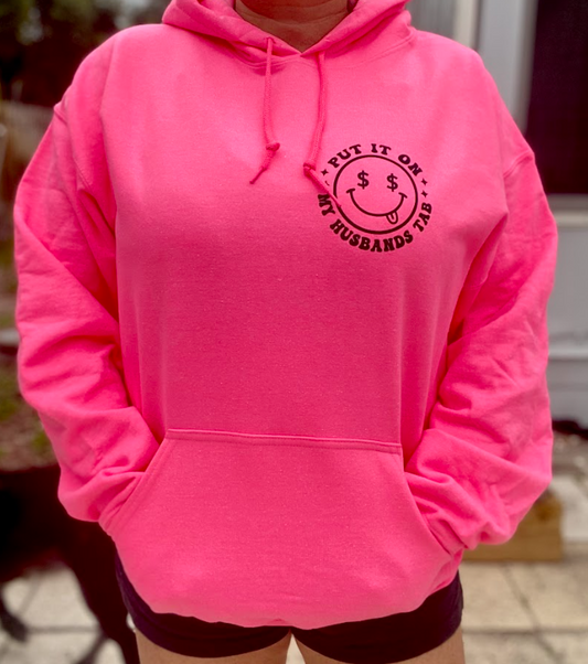 Put It On My Husband's Tab | Neon Pink Hoodie | Unisex Sweater | Pink Hooded Sweatshirt