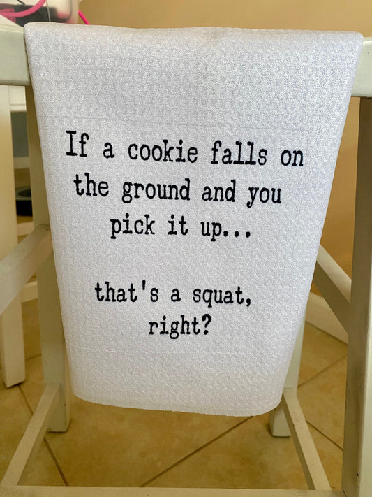 Funny Kitchen Towel | If A Cookie Falls & I Pick It Up | Neighbor Gift| Squat Dish Towel