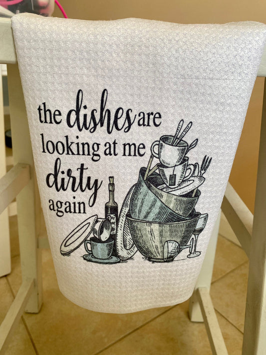 Funny Kitchen Towel | The Dishes Are Looking At Me Dirty | Neighbor Gift| Dish Towel
