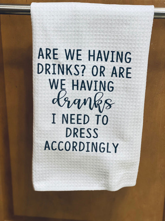 Funny Kitchen Towel | Are We Having Drinks Or Dranks | Neighbor Gift| Dish Towel