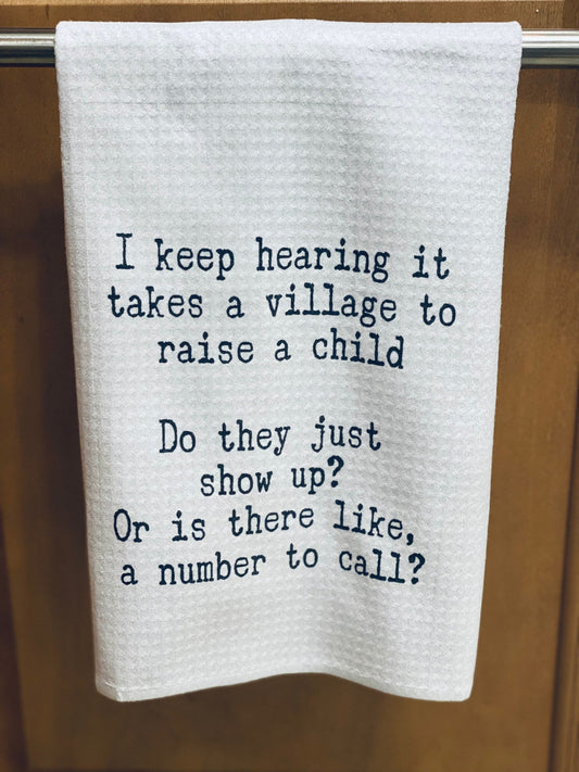 Funny Kitchen Towel | I Hear It Takes A Village To Raise A Child | Neighbor Gift| Dish Towel