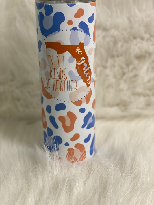 In All Kinds Of Weather | Florida Gator | Orange and Blue Leopard | 20oz skinny tumbler | Drinking tumbler | college football