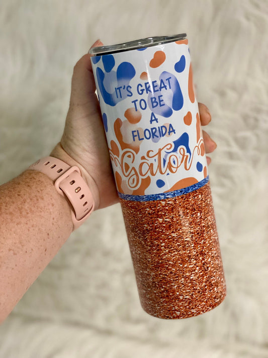 It’s Great To Be A Florida Gator | Orange and Blue Leopard | 20oz skinny tumbler | Drinking tumbler | college football