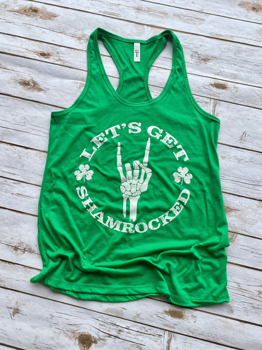 St Patrick's Day | Let’s Get Shamrocked | Skeleton Hand | Ladies Racerback Tank Top