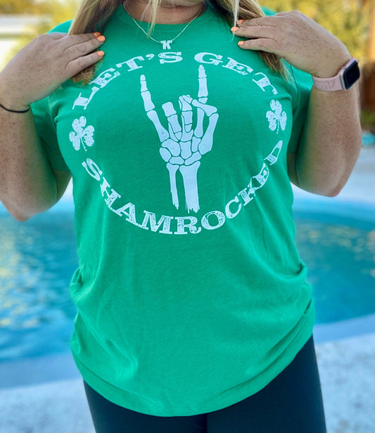 St Patrick's Day | Let’s Get Shamrocked | Skeleton Hand | Unisex Green T-shirt