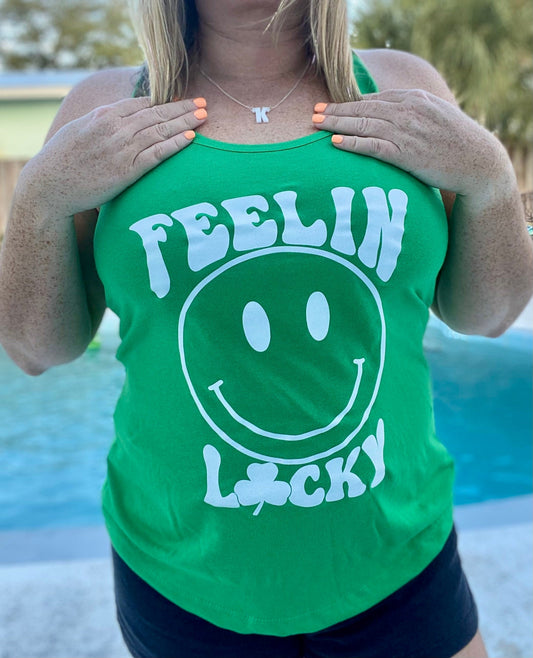 Feelin' Lucky | St Patrick's Day ladies tank top | Smiley Face | St Patty's Day