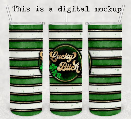 Lucky Bitch | Green Tumbler | 20oz skinny tumbler | St Patrick's Day Drinking tumbler
