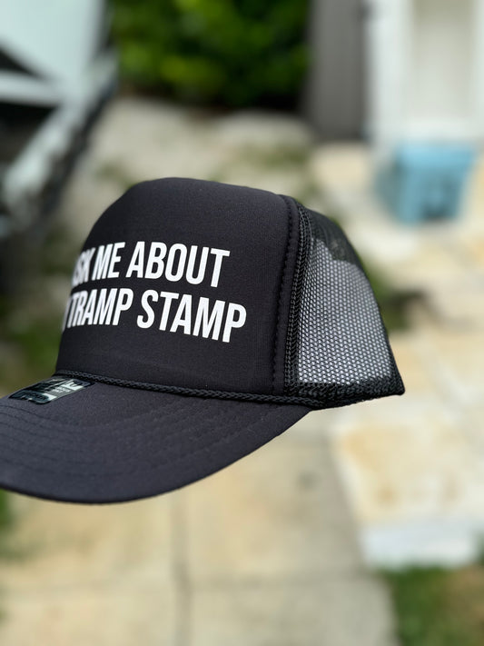 Ask Me About My Tramp Stamp| Trucker Hat | Black Hat | Unisex Hat