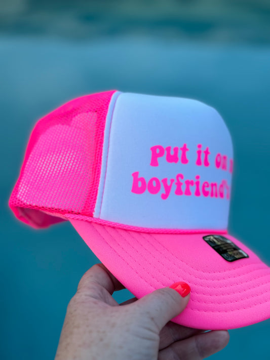 Put It On My Boyfriend’s Tab | Trucker Hat | Neon Pink | Unisex Hat