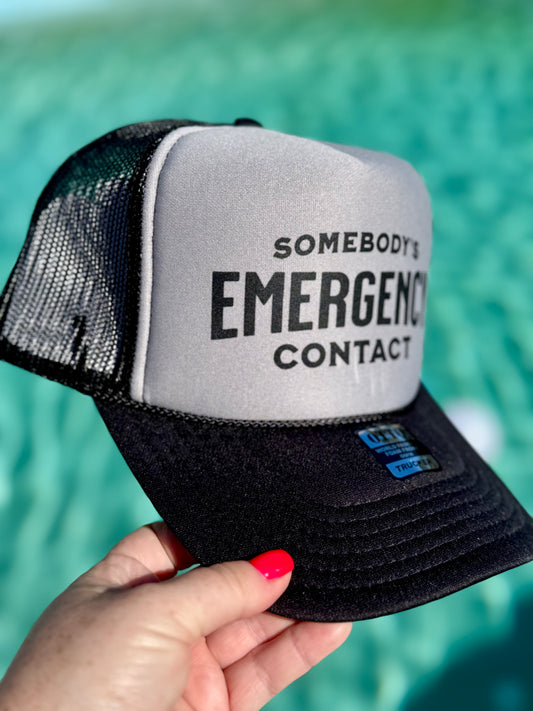 Somebodys Emergency Contact | Trucker Hat | Black Gray 5-panel | Unisex Hat