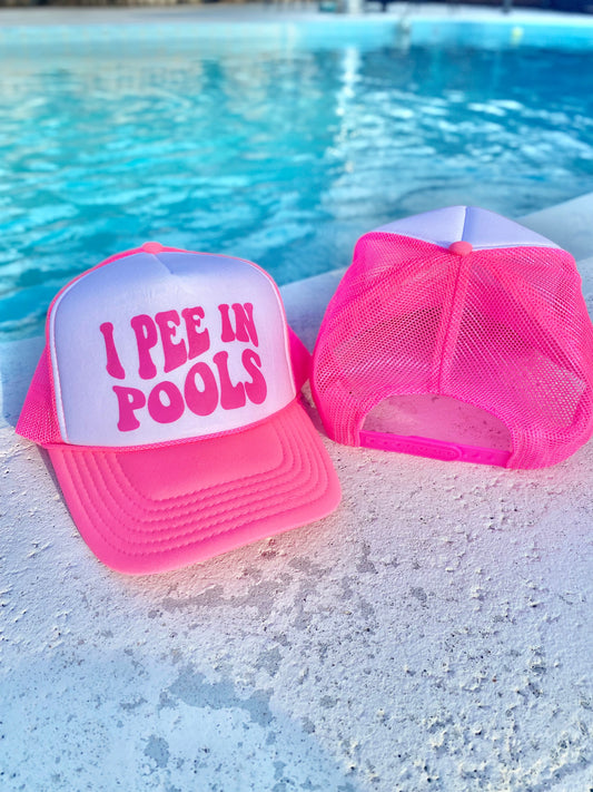 I Pee In Pools | Trucker Hat | Neon Pink | Unisex Hat