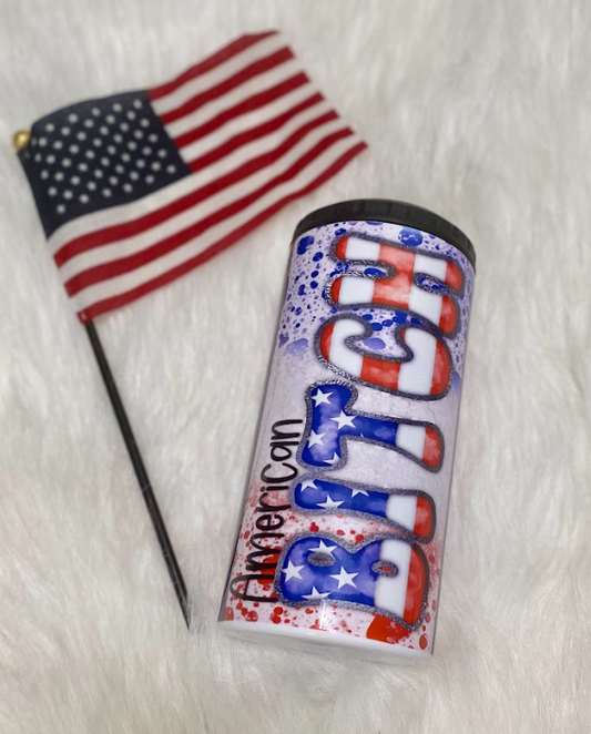 American Bitch | 4-in-1 Can Cooler | Skinny Can | Red, White & Blue Tie Dye | Beer Coolie | Patriotic | America Cup