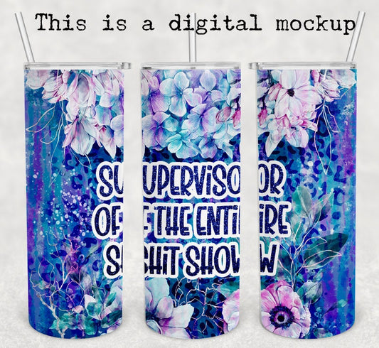 Supervisor Of The Entire Shitshow | 20oz skinny tumbler | Mom Tumbler | Floral Cup