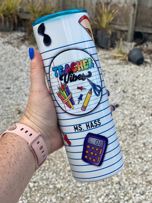 Teacher Vibes | Teacher Tumbler | 20oz skinny tumbler | Teacher gift