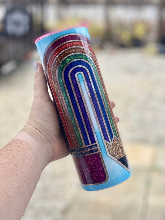 Teacher Gift | Teacher Tumbler | 20oz skinny tumbler | Rainbow Pencil