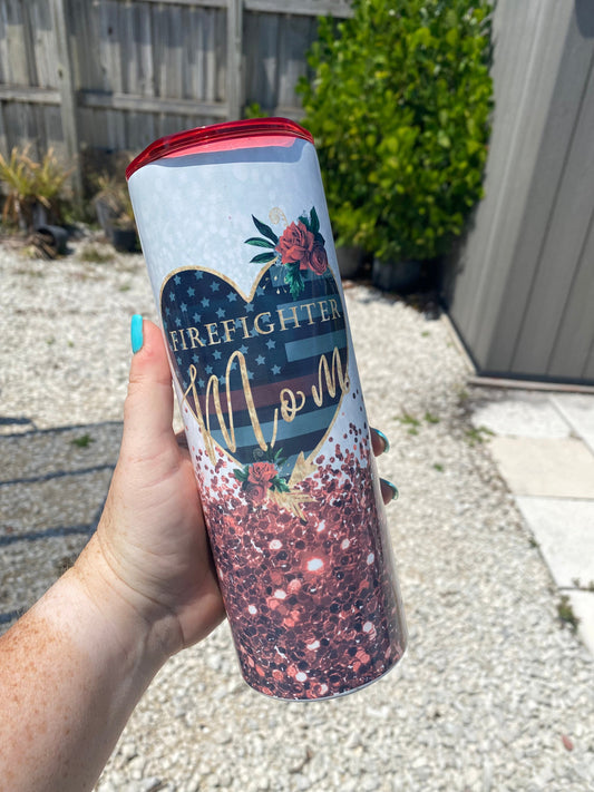 Firefighter Mom | 20oz skinny tumbler | Faux Glitter | Mom Tumbler | Mother's Day Gift