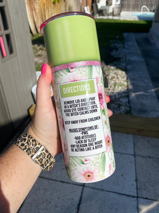 Bye Bitch Spray Can| 20oz skinny tumbler | Floral | Drinking Cup | Bitch Repellent