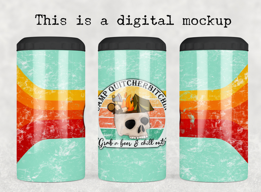 Camp Quitcherbitchin | 4-in-1 Can Cooler | Skinny Can | Camping Drinking Beer Coolie