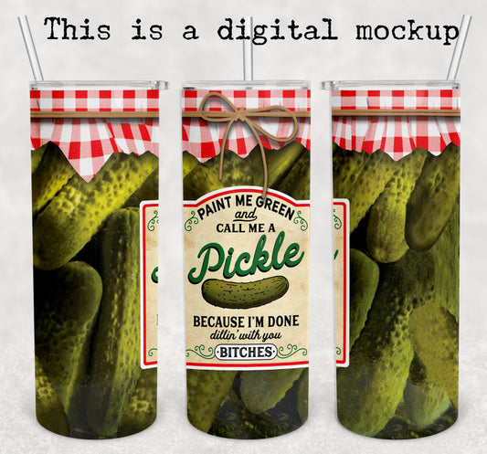 Dill Pickle | 20oz skinny tumbler | Done Dillin With You Bitches | Drinking Cup